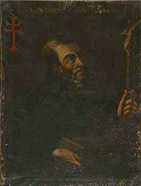 En la inscripción puede leerse: “S. IO. . COLUMBIN F. OR. IE(...)OR”. A la izquierda del retratado se muestra la cruz del Santo Sepulcro.San Juan Columbino, caballero senés e instituidor de la religión de los jesuates.