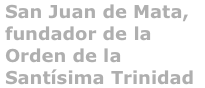 La Orden de la Santísima Trinidad (Trinitarios) es una familia religiosa fundada por el francés San Juan de Mata (1154-1213), de origen provenzal, con Regla propia, aprobada por Inocencio III el 17 de diciembre 1198 con la bula Operante divine dispositionis; a la que se unió la praxis de San Félix de Valois (cofundador de la Orden). Es la primera institución oficial en la Iglesia dedicada al servicio de la redención con las manos desarmadas, sin más armadura que la misericordia, y con la única intención de devolver la esperanza a los hermanos en la fe que sufrían bajo el yugo de la cautividad.