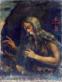 En la inscripción puede leerse: “S. HONOFR(...)”. A la derecha del retratado se muestra su la cruz del Santo Sepulcro.