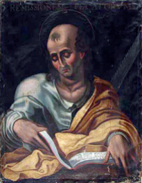 Simón, apodado el Zelote o el Cananeo, aparece en décimo o en undécimo lugar en las listas de apóstoles. Poco sabemos de su vida, pero una tradición señala que predicó el Evangelio en Egipto. Sabemos que fue sepultado en Persia, donde había sido muerto con su compañero San Judas. La imagen que lo representa recoge una tradición que cuenta que en su martirio fue cortado con una sierra de leñador por los adoradores del sol en Persia.