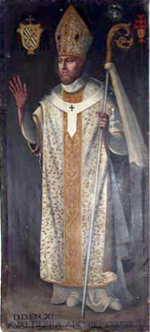 El retratado fue Arzobispo de Tarazona y murió en 1338. En la inscripción puede leerse: “D. D. EN. XI. A VALTIERRA. ARCHIEPS TARRACO. 1388”. A la izquierda del retratado se muestra su escudo personal y a la derecha la cruz del Santo Sepulcro con el escudo de Aragón.